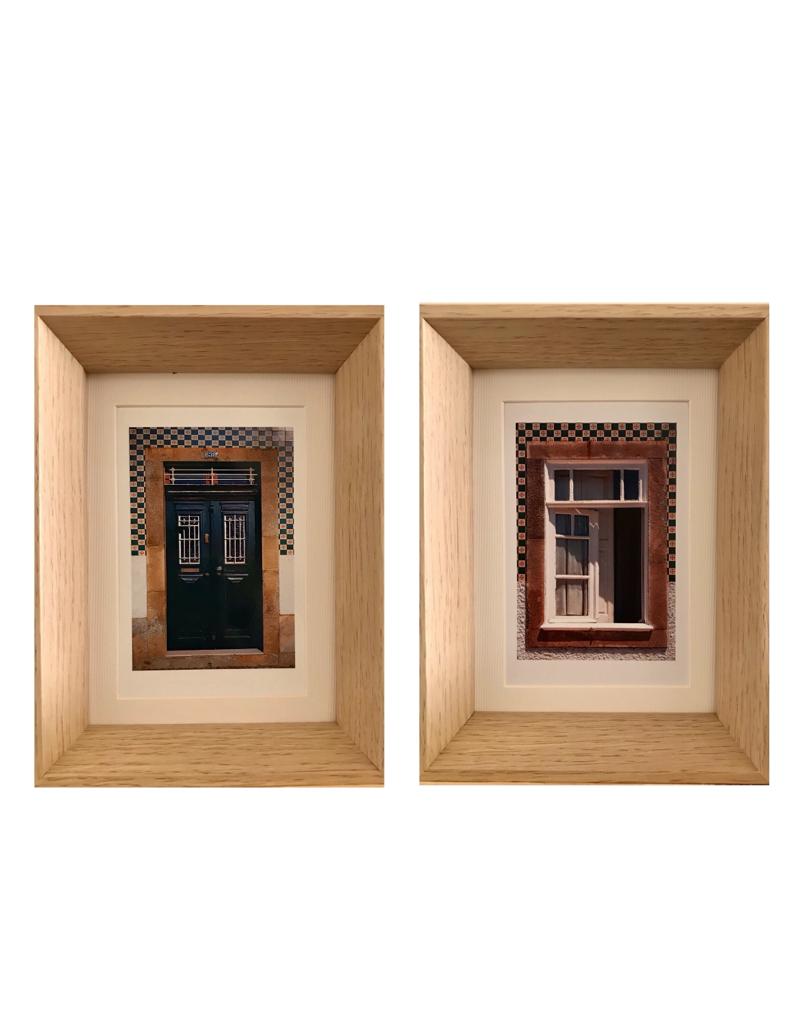 Quadro Retangular de cor Bétula, em carvalho, com Fotografia de janela do Porto.